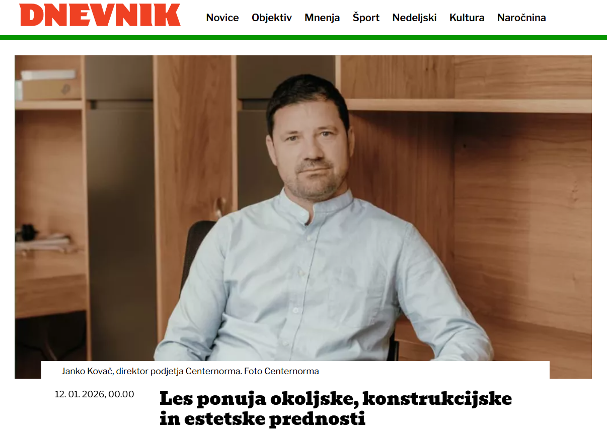 In einem Interview für Dnevnik haben wir unsere Sicht auf Holz als nachhaltigen Werkstoff der Zukunft geteilt und dessen ökologische, konstruktive und ästhetische Vorteile hervorgehoben.